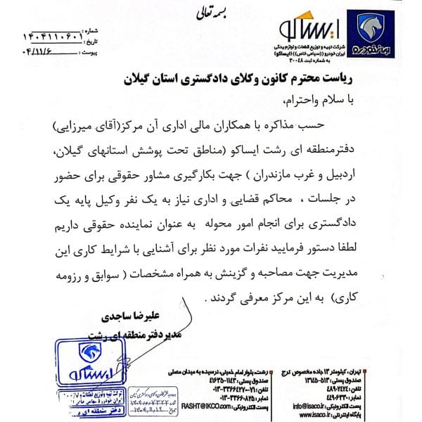 دریافت مستقیم توسط هیات مدیره کانون وکلای دادگستری گیلان