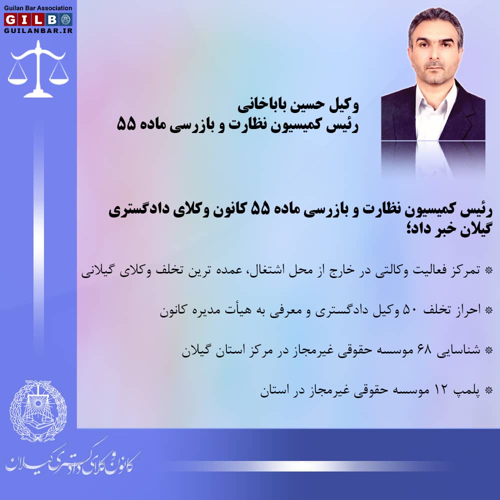 رئیس کمیسیون نظارت وبازرسی ماده ۵۵کانون وکلای دادگستری گیلان خبر داد؛
