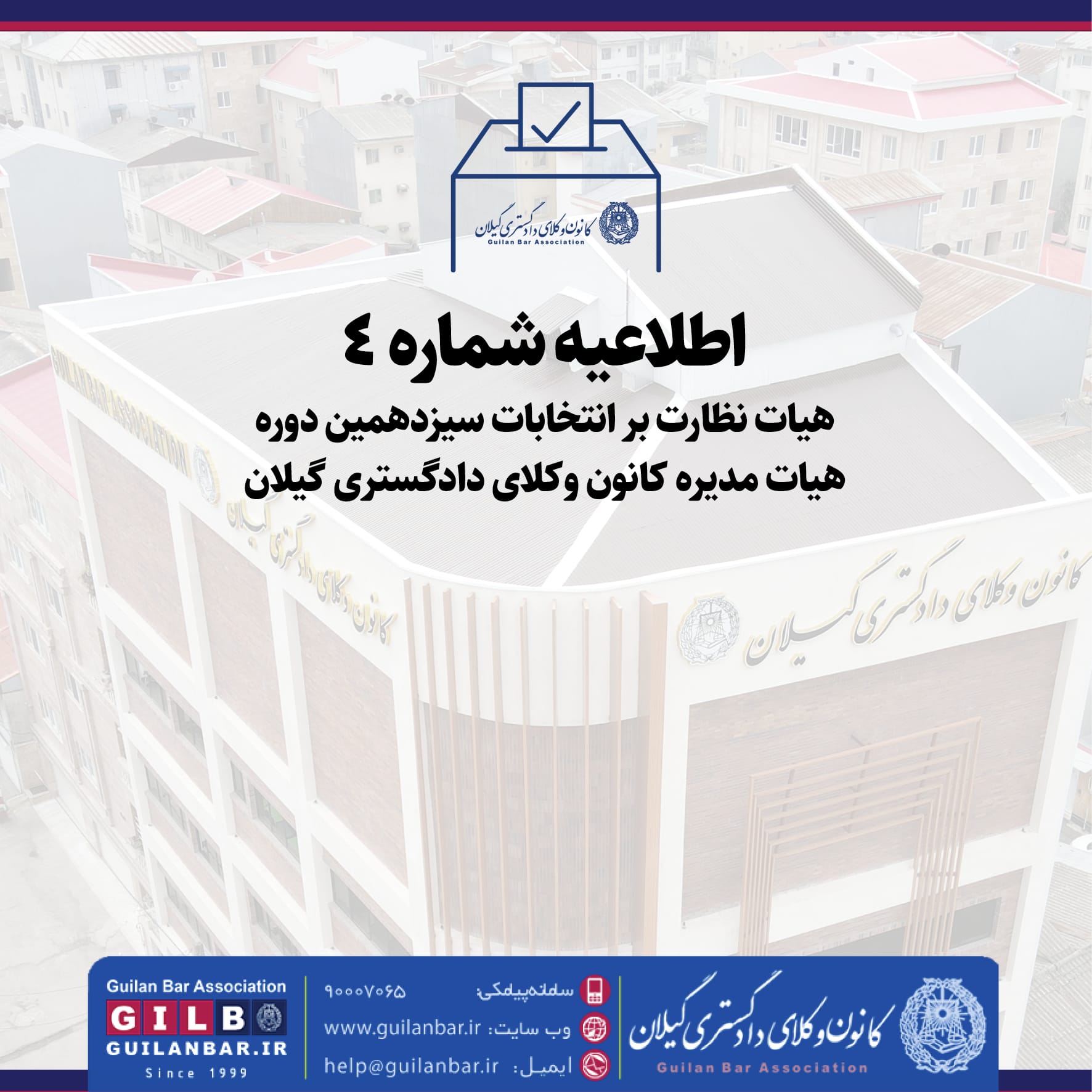 ۴. با توجه به کثرت تعداد رأیدهندگان و محدودیت فضای محل انتخابات و ضرورت رعایت نظم، حضور افراد غیر وکیل اعم از کارآموزان محترم و غیره در محل انتخابات ممنوع میباشد.