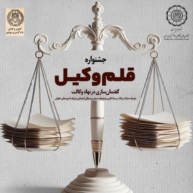 فراخوان دومین جشنواره «قلم وکیل» با اعلام موضوعات این جشنواره با همکاری مشترک اتحادیه سراسری کانون‌های وکلای دادگستری ایران (اسکودا) و کانون وکلای بوشهر اعلام شد.