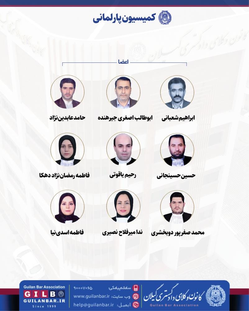 –  در خصوص کمیسیون پارلمانی آقایان ابراهیم شعبانی، ابوطالب اصغری جیرهنده، حامد عابدین‌نژاد، حسین حسینجانی، محمد صفرپور دوبخشری، رحیم یاقوتی و خانم‌ها سیده ندا میرفلاح نصیری، فاطمه رمضان‌نژاد دهکا و فاطمه اسدی‌نیا انتخاب و تعیین گردیدند.