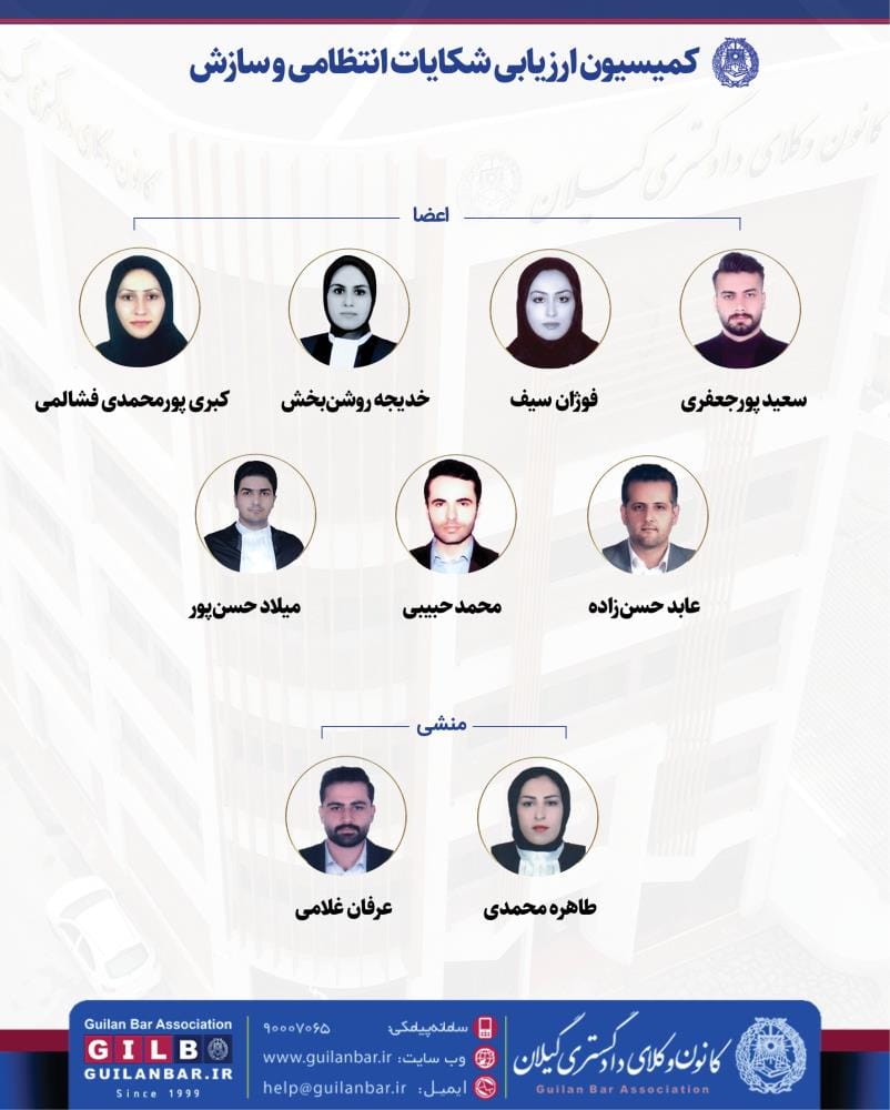 – در خصوص کمیسیون ارزیابی شکایات انتظامی و سازش خانم‌ها فوژان سیف، خدیجه روشن‌بخش،  کبری پورمحمدی فشالمی و آقایان عابد حسن‌زاده، محمد حبیبی، میلاد حسن‌پور و سعید پورجعفری به عنوان اعضای اصلی و خانم طاهره محمدی و آقای عرفان غلامی به عنوان منشی‌ها انتخاب و تعیین گردیدند.