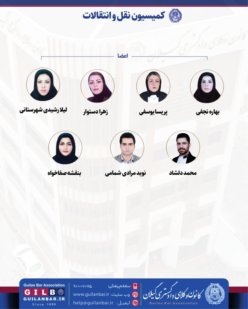 در خصوص کمیسیون نقل و انتقالات خانم‌ها بهاره نجفی، پریسا یوسفی دره‌جیری، زهرا دستوار، لیلا رشیدی شهرستانی، بنفشه صفاخواه و آقایان محمد دلشاد و نوید مرادی شمامی انتخاب و تعیین گردیدند.