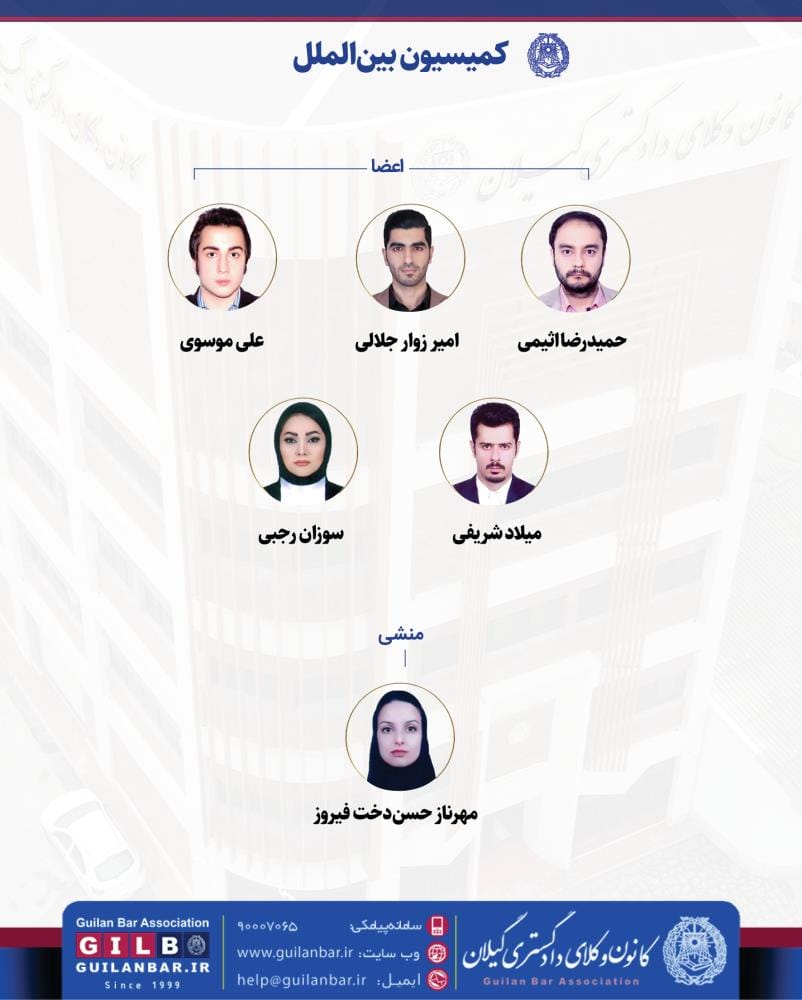 در خصوص کمیسیون بین‌الملل آقایان حمیدرضا اثیمی، امیر فامیل زوّار جلالی، علی موسوی، میلاد شریفی کلاچاهی و خانم سوزان رجبی به عنوان اعضای اصلی و خانم مهرناز حسن‌دخت فیروز به عنوان منشی انتخاب و تعیین گردیدند.