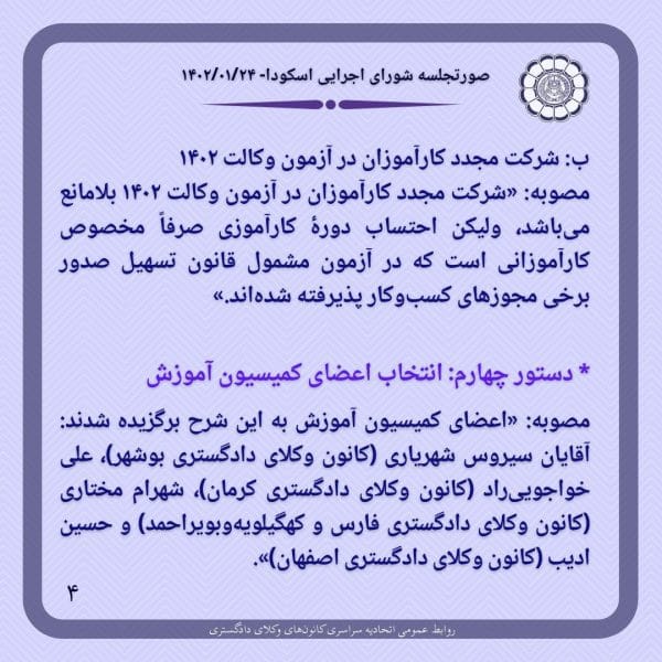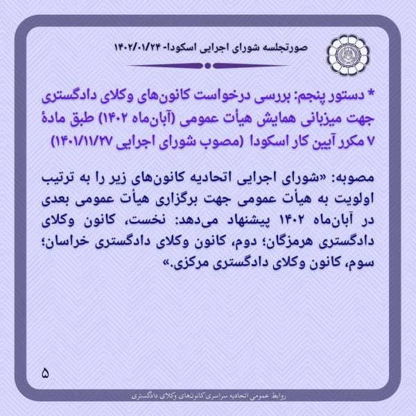 صورتجلسه شورای اجرایی اتحادیه سراسری کانون‌های وکلای دادگستری ایران (اسکودا)