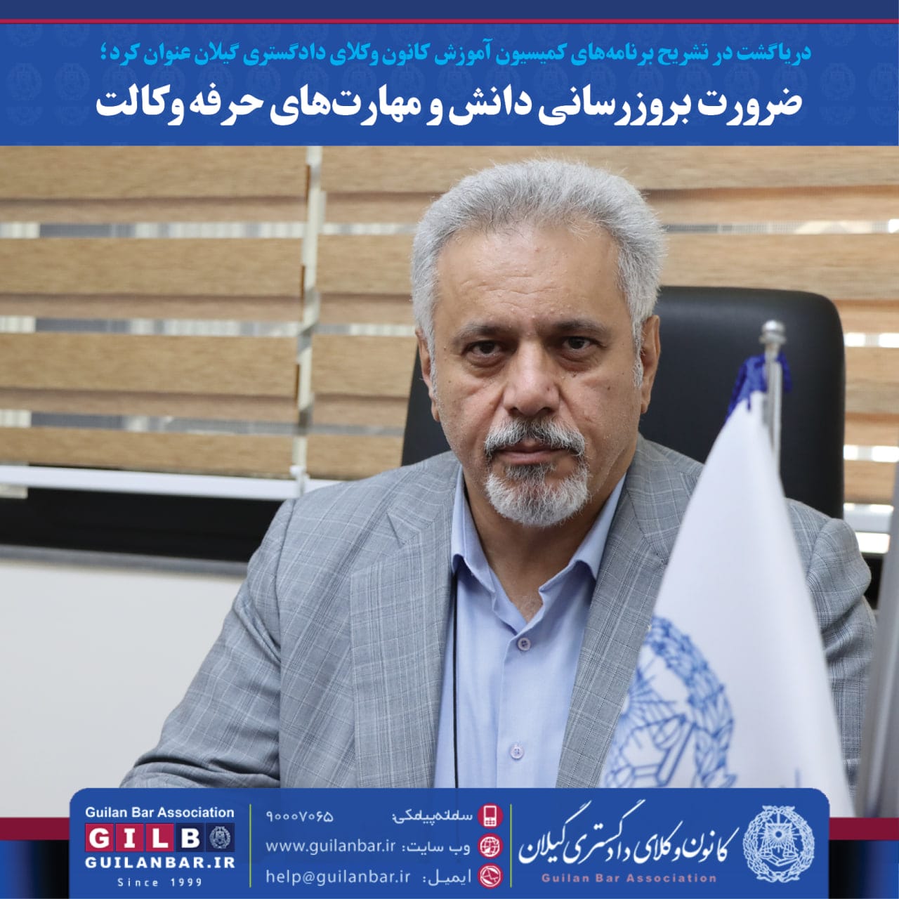 رییس کمیسیون آموزش کانون وکلای دادگستری گیلان تاکید کرد : انتظار میرود همکاران با پذیرش ضرورت نوآموزی و بازآموزی موضوعات و عناوین آموزشی و بروزرسانی دانش و مهارت حرفهای خود در این حوزه ما را در خدمترسانی آموزشی یاری رسانند.