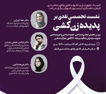 در پی حادثه تلخ و ناگوار منجر به قتل بانوی جوان که در روزهای اخیر افکار عمومی را بهشدت متأثر ساخته است، کلینیک حقوق زنان و خانواده کانون وکلای دادگستری گیلان با ابراز تأسف عمیق نسبت به این واقعه، نکاتی چند را از منظر حقوقی و اجتماعی شایسته یادآوری و تأمل میداند: