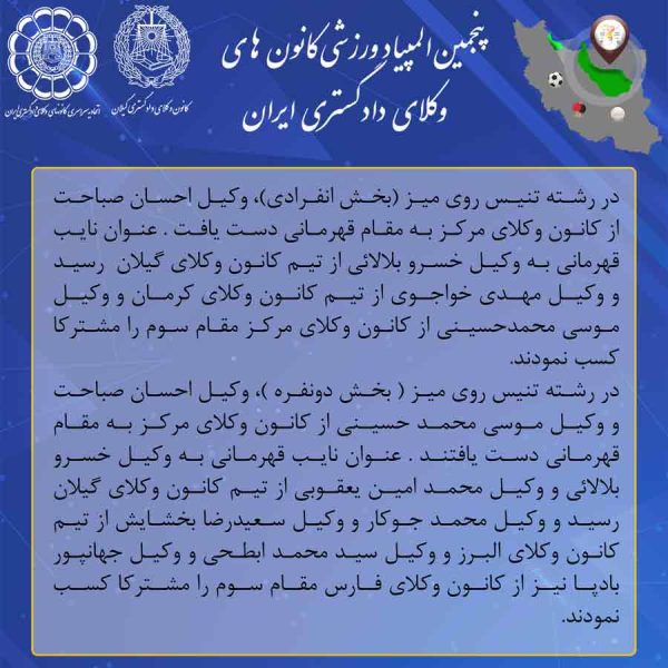 نتایج پنجمین المپیاد ورزشی کانون های وکلای دادگستری ایران در یک نگاه