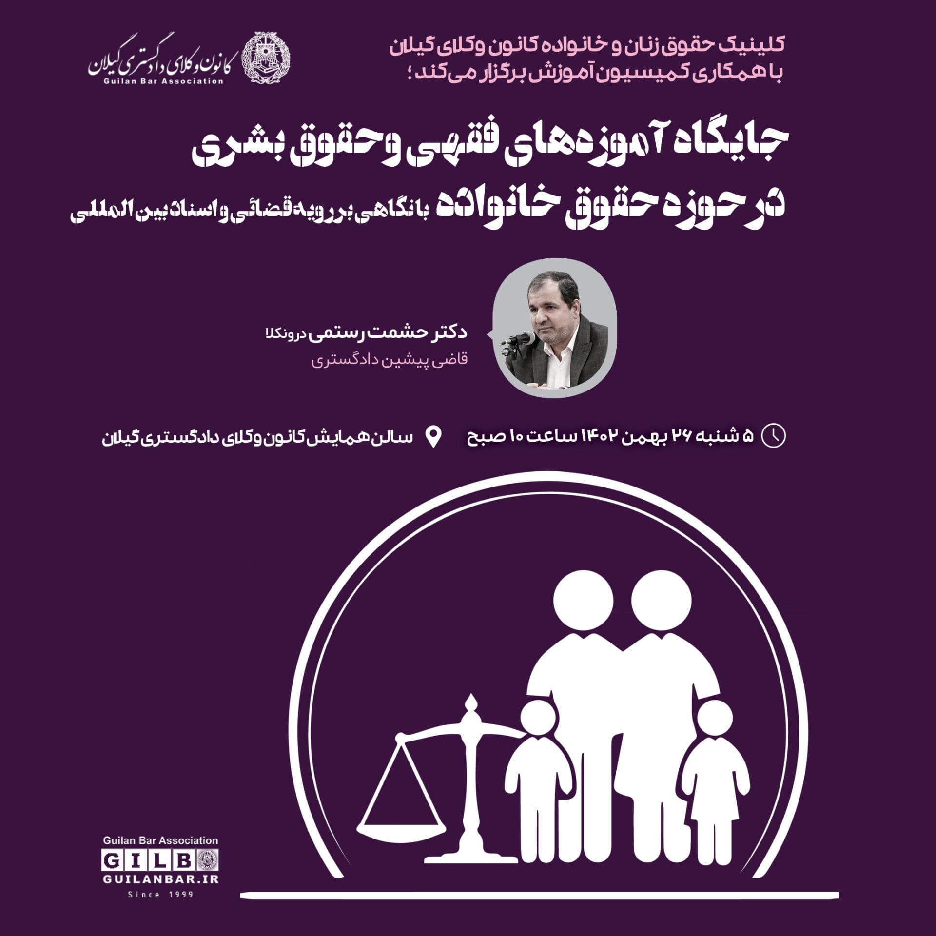 کلینیک حقوق زنان و خانواده کانون وکلای گیلان با همکاری کمیسیون آموزش برگزار می‌کند ؛
