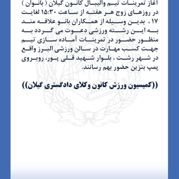 آگهی ورزشیباران نوروزی۱۴۰۰-۰۹-۱۴نظر به در پیش بودن برگزاری پنجمین المپیاد ورزشی کانونهای وکلای دادگستری ایران و آغاز تمرینات تیم والیبال کانون گیلان ... ادامه مطلب