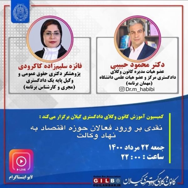 نقدی بر ورود فعالان حوزه اقتصاد به نهاد وکالتشالکوئی۱۴۰۰-۰۵-۱۵کمیسیون آموزش کانون وکلای دادگستری گیلان برگزار میکند: برنامهی زنده (لایو اینستاگرام) موضوع : “نقدی بر ورود فعالان حوزه ... ادامه مطلب
