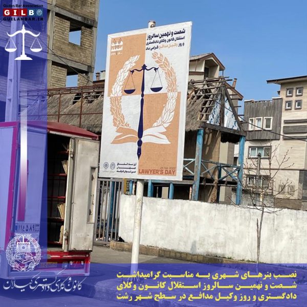 به مناسبت روز وکیلباران نوروزی۱۴۰۰-۱۲-۰۸نصب بنرهای شهری به مناسبت گرامیداشت شصت و نهمین سالروز استقلال کانون وکلای دادگستری و روز وکیل مدافع در سطح ... ادامه مطلب