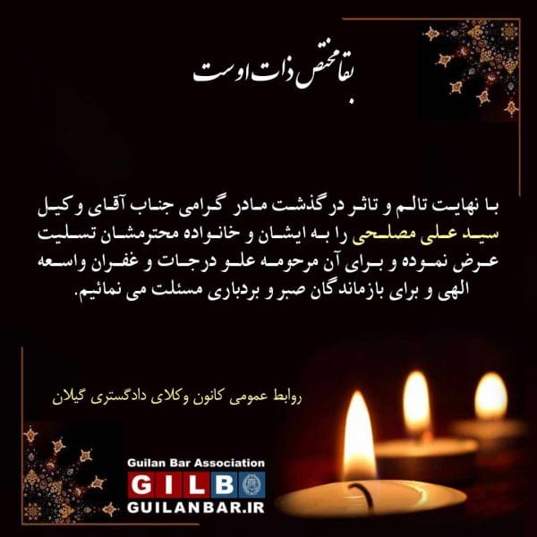 آگهی تسلیتسجاد خان میرزائی۱۴۰۱-۰۷-۲۰بقا مختص ذات اوست با نهایت تالم و تاثر درگذشت مادر گرامی جناب آقای وکیل سید علی مصلحی را به ... ادامه مطلب