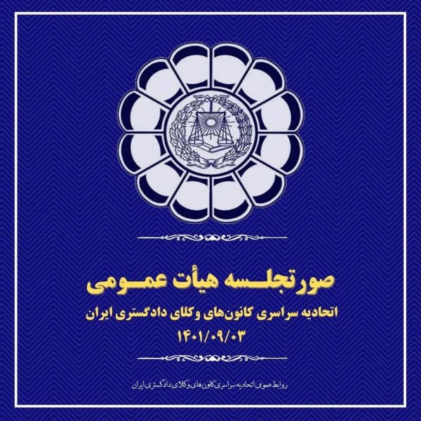 صورتجلسه هیات عمومی اسکوداسجاد خان میرزائی۱۴۰۱-۰۹-۰۶صورتجلسه هیات عمومی اتحادیه سراسری کانونهای وکلای دادگستری ایران، چهل و هفتمین همایش سراسری اسکودا، بابلسر، مازندران، مورخ ۱۴۰۱/۰۹/۰۳ ... ادامه مطلب