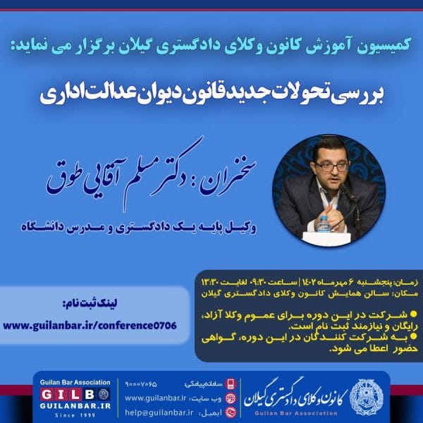 همایش بررسی تحولات جدید قانون دیوان عدالت اداری برگزار می شودایمان رنجکش۱۴۰۲-۰۶-۳۱کمیسیون آموزش کانون وکلای دادگستری گیلان برگزار می کند: همایش بررسی تحولات جدید قانون دیوان عدالت اداری با سخنرانی دکتر ... ادامه مطلب
