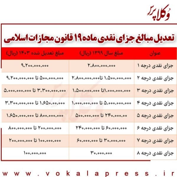 مصوبه تعدیل مبالغ جزای نقدی قوانین و مقررات مختلف در سال ۱۴۰۳ایمان رنجکش۱۴۰۳-۰۴-۱۰مصوبه هیات وزیران در خصوص تعدیل مبالغ جزای نقدی قوانین و مقررات مختلف در سال ۱۴۰۳ (اصلاح میزان مبالغ مربوط ... ادامه مطلب