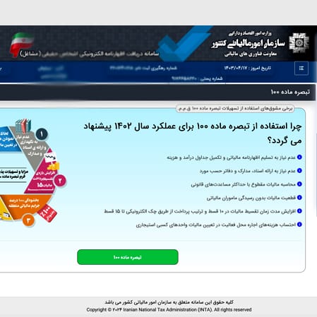 امکان ایجاد و ارسال فرم تبصره ماده ۱۰۰ قانون مالیات های مستقیم به جای اظهارنامه مالیاتی برای وکلا فعال شدایمان رنجکش۱۴۰۳-۰۴-۱۸پس از تاخیر ایجاد شده نهایتا امکان ایجاد و ارسال فرم تبصره ماده ۱۰۰ قانون مالیات های مستقیم به جای ... ادامه مطلب