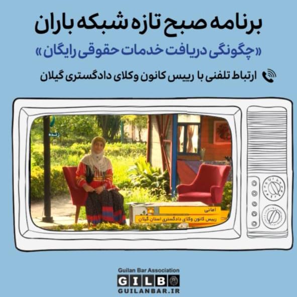 گفتگوی زنده تلفنی رییس کانون وکلای گیلان در برنامه صبح تازه شبکه بارانایمان رنجکش۱۴۰۳-۰۵-۱۷برنامه صبح تازه شبکه باران با موضوع «چگونگی دریافت خدمات حقوقی رایگان » ارتباط تلفنی با علیرضا امانی رییس کانون ... ادامه مطلب