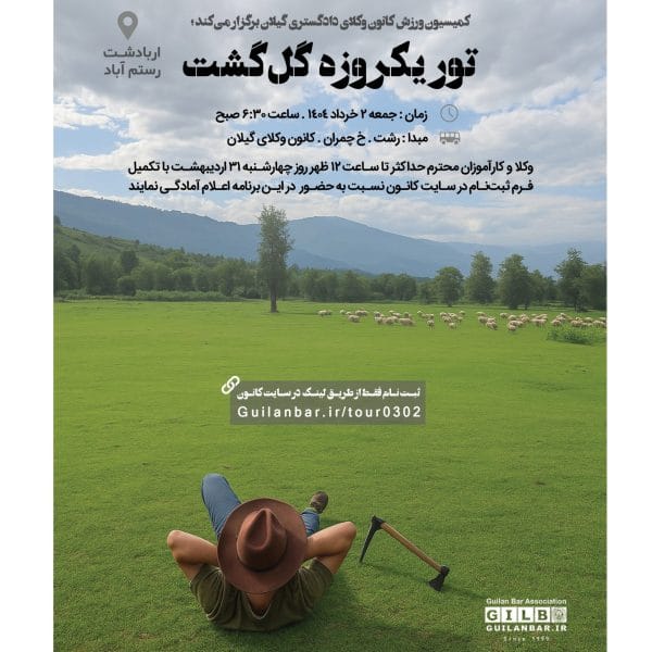 برگزاری تور یکروزه گلگشت / اربادشت رستم آبادایمان رنجکش۱۴۰۴-۰۲-۲۹کمیسیون ورزش کانون وکلای دادگستری گیلان در نظر دارد تور یکروزه گلگشت به مقصد اربادشت رستم آباد را برگزار نماید. ... ادامه مطلب
