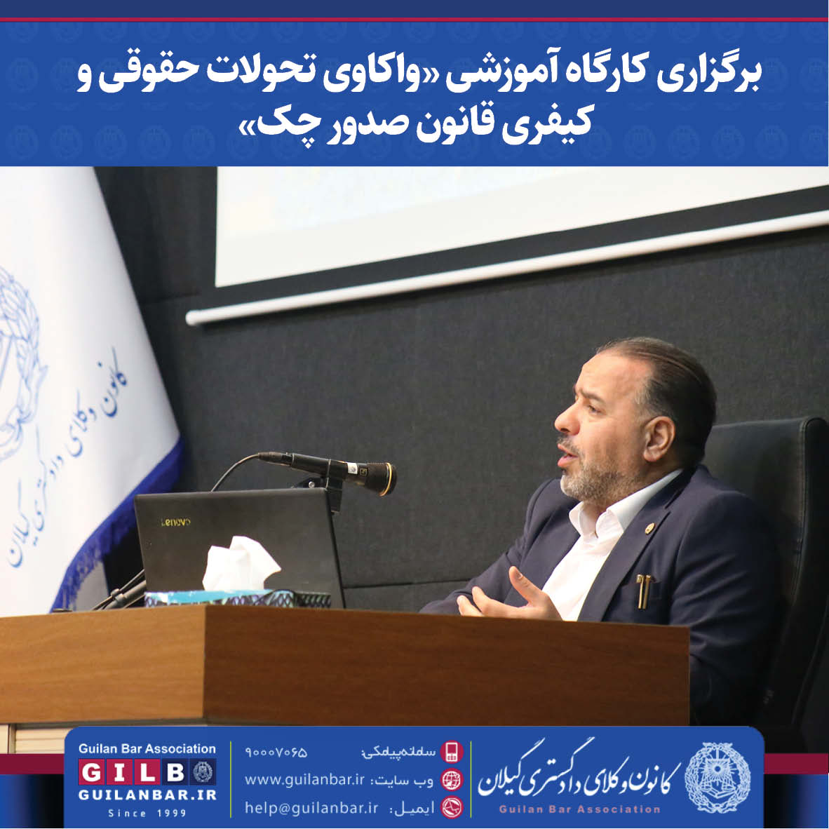 صبح امروز (پنجشنبه ۱۴ دیماه) به همت کمیسیون آموزش کانون وکلای دادگستری گیلان کارگاه آموزشی «واکاوی تحولات حقوقی و کیفری قانون صدور چک» با سخنرانی دکتر سیدمهدی حجتی (وکیل دادگستری و عضو ادوار هیات مدیره کانون وکلای دادگستری مرکز) در سالن همایش کانون برگزار شد.