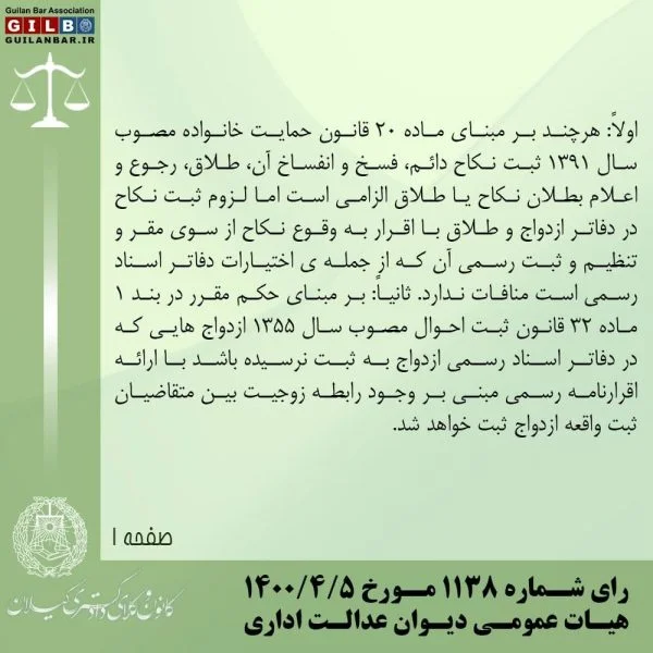 رای شماره ۱۱۳۸ هیات عمومی دیوان عدالت اداریشالکوئی۱۴۰۰-۰۵-۲۰رای شماره ۱۱۳۸ مورخ ۱۴۰۰/۴/۵ هیات عمومی دیوان عدالت اداری ... ادامه مطلب