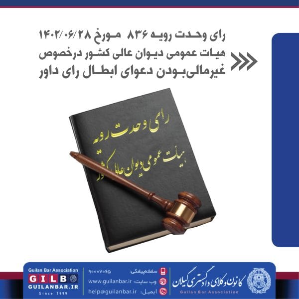 انتشار رای وحدت رویه شماره ۸۳۶ هیات عمومی دیوان عالی کشور درخصوص غیرمالیبودن دعوای ابطال رای داورایمان رنجکش۱۴۰۲-۰۷-۲۶با توجه به اینکه در دعاوی اعتراض به رأی داوری، خواهان معمولاً در پی کسب منفعت مالی نیست، بلکه به ... ادامه مطلب