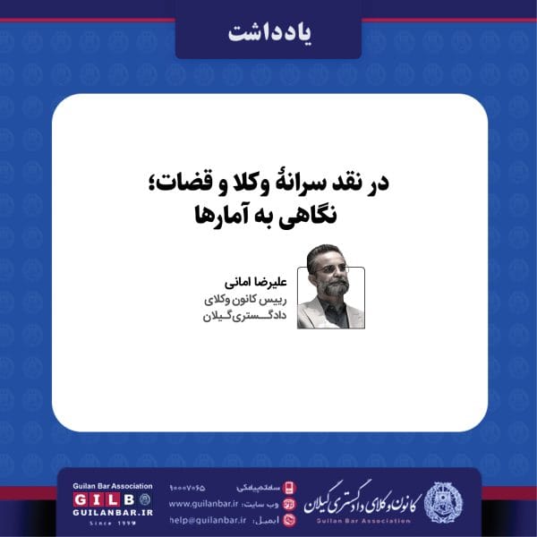 یادداشت | در نقد سرانهٔ وکلا و قضات؛ نگاهی به آمارهاایمان رنجکش۱۴۰۳-۰۶-۲۴به تازگی دادستان ارجمند کل کشور در اظهار نظر کوتاهی که از ایشان در سایتها منتشر شد، به دو نکتهٔ ... ادامه مطلب