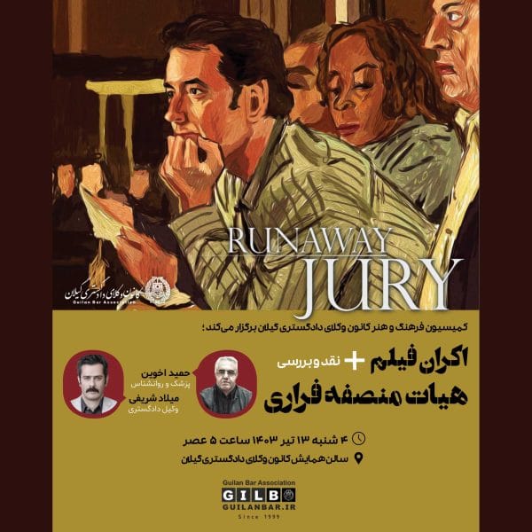 اکران فیلم «هیات منصفه فراری» + نقد و بررسیایمان رنجکش۱۴۰۳-۰۴-۱۱کمیسیون فرهنگ و هنر کانون وکلای دادگستری گیلان جلسه اکران و نقد و بررسی فیلم«هیات منصفه فراری» را با حضور ... ادامه مطلب