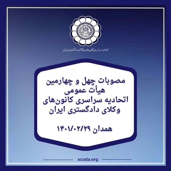 صورتجلسه شورای اجرایی اتحادیه سراسری کانونهای وکلای دادگستری ایران (اسکودا)محمد خان میرزائی۱۴۰۲-۰۱-۲۵صورتجلسه شورای اجرایی اتحادیه سراسری کانونهای وکلای دادگستری ایران (اسکودا) ... ادامه مطلب