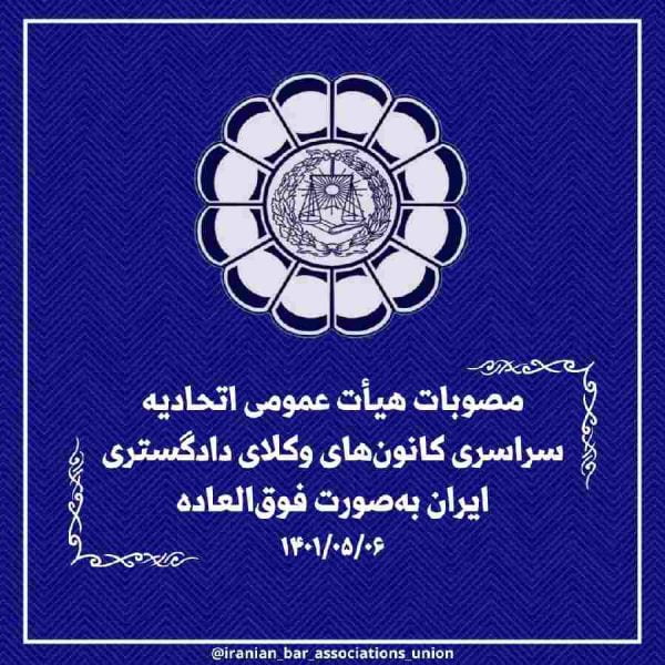 مصوبات هیات عمومی اتحادیه سراسری کانون های وکلا به صورت فوق العادهایمان رنجکش۱۴۰۱-۰۵-۰۶مصوبات هیأت عمومی اتحادیۀ سراسری کانونهای وکلای دادگستری ایران بهصورت فوقالعاده – ۱۴۰۱/۰۵/۰۶ روابط عمومی کانون وکلای دادگستری گیلان ... ادامه مطلب