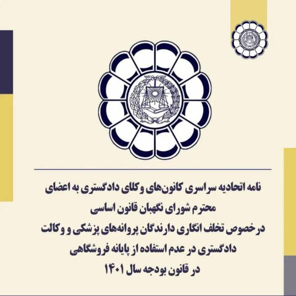 نامه اسکودا به اعضای محترم شورای نگهبان قانون اساسیباران نوروزی۱۴۰۰-۱۲-۲۶نامه اتحادیه سراسری کانونهای وکلای دادگستری ایران به اعضای محترم شورای نگهبان قانون اساسی درخصوص تخلف انگاری دارندگان پروانههای پزشکی ... ادامه مطلب